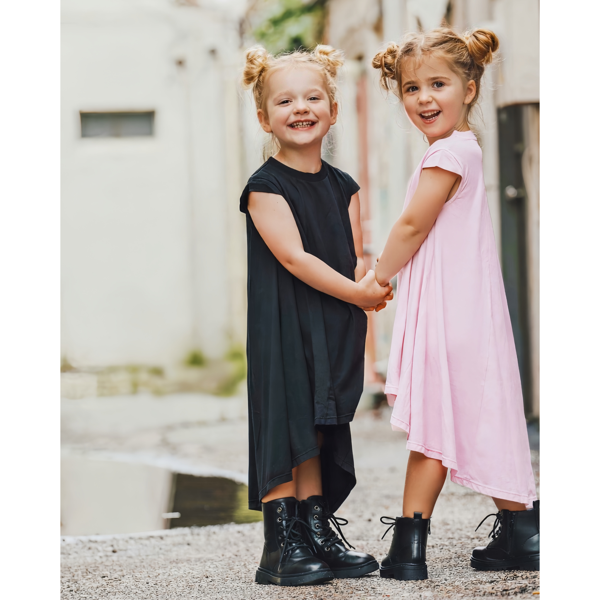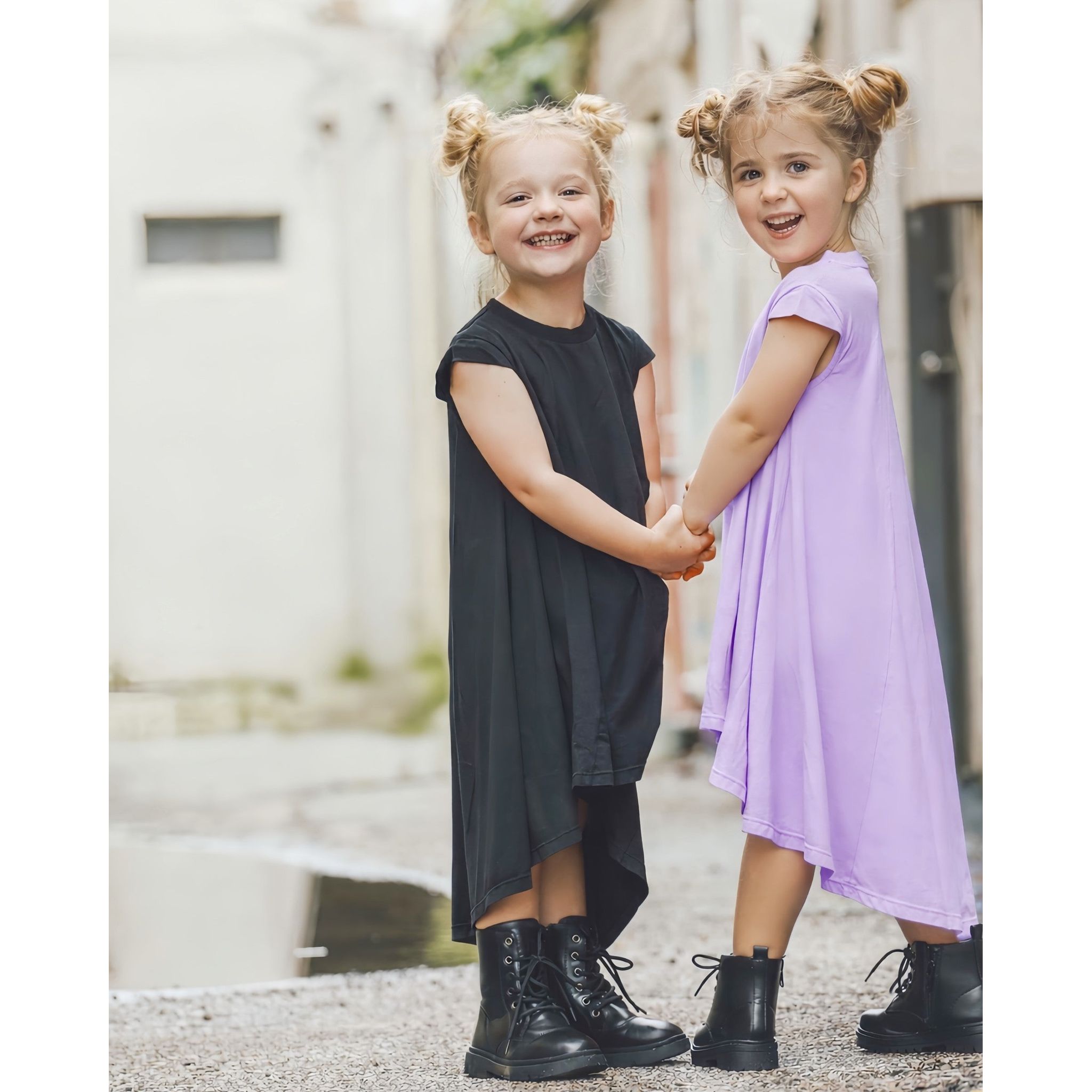 Meet the Mimi Dress—where comfort meets cool. This flowy high-low silhouette is all about effortless style and dreamy twirls. The playful hem adds that extra flair little ones love, while the fashion-forward cut keeps it fresh for every season. Whether she’s dancing through the living room or strutting into a birthday party, Mimi is the dress she’ll reach for again and again.